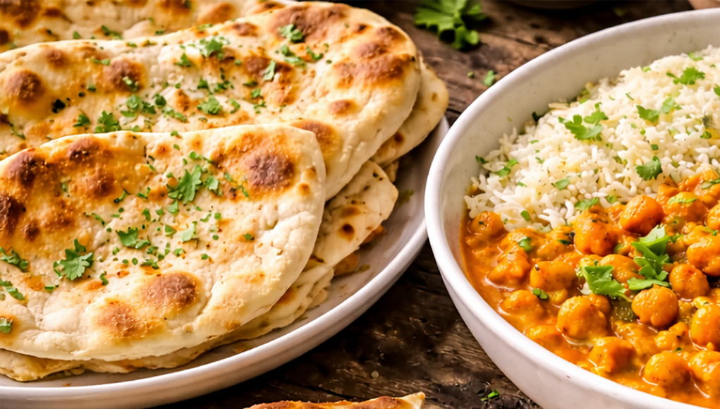 Soft, warm, and slightly chewy, naan bread is the perfect companion to rich, flavourful curries. Its light, airy texture with gentle charred bubbles creates a satisfying contrast between crisp edges and a tender centre. When brushed with butter or infused with garlic, it becomes even more indulgent and aromatic. Despite its simplicity, naan delivers comfort and depth, making every meal feel complete. It’s ideal for scooping up sauces, enhancing every bite with its subtle flavour. Freshly made, it transforms a simple dish into a restaurant-quality experience, bringing warmth, tradition, and satisfaction to the table.